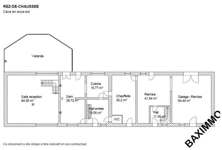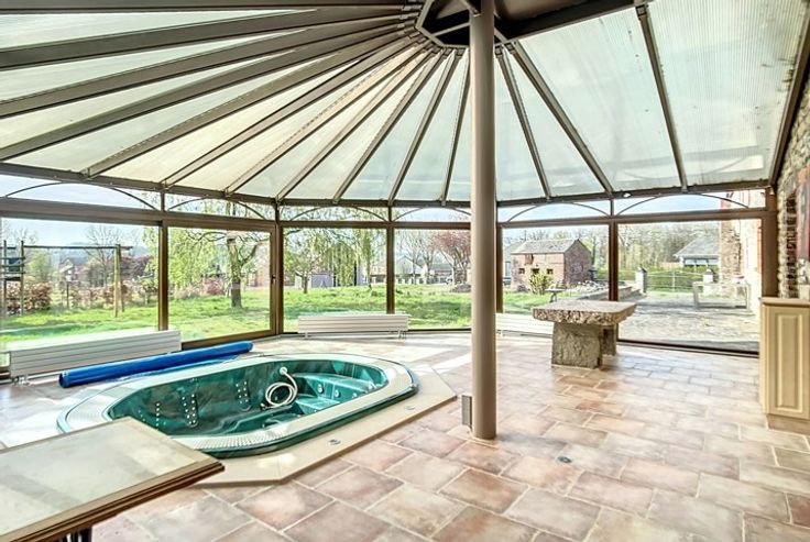 Rez-de-chaussée : Hall d’entrée, cuisine ent. équipée, salle à manger avec feu ouvert, grande pièce (salle de réception), spacieuse véranda (avec jacuzzi et barbecue), chaufferie et deux remises.