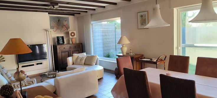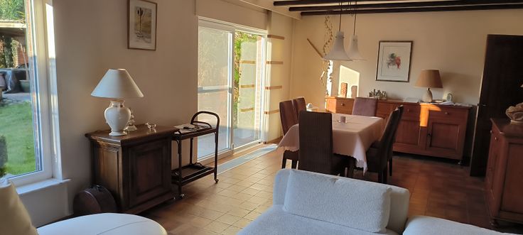 Bel étage : hall - cuisine - living- terrasse - jardin - pergola -
