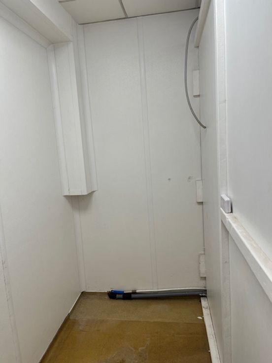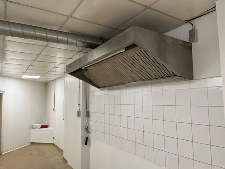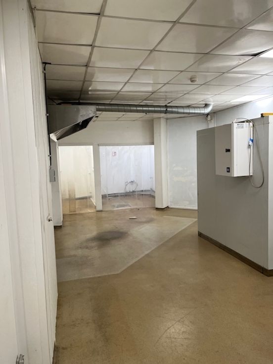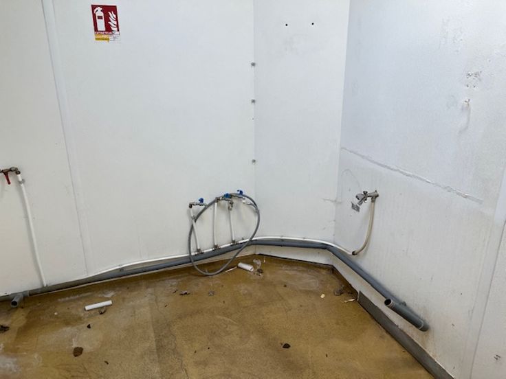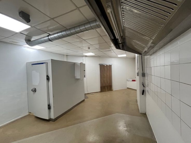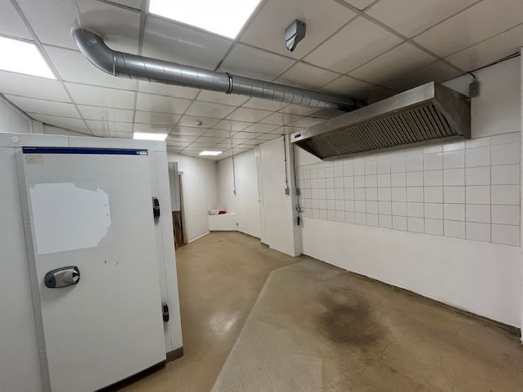 De ruimte is uitgerust met een garderobe en een opslagruimte. De uitrusting omvat een koelcel van +4°, een professionele afzuigkap, de nodige elektriciteit en stromend water.