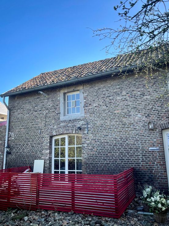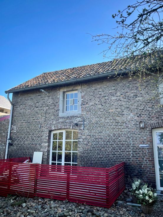 Maison 1 chambre + dressing avec terrasse située dans l'ancienne ferme de Navagne (Eleveschans 1, 3790 Fourons), à proximité de Visé et toutes ses commodités.