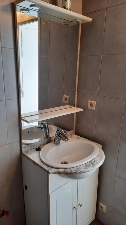 Studio de 27 m²,comprenant hall d'entrée avec porte coupe-feu, s.de.bain avec douche, lavabo, w.c. et emplacement pour petite machine à laver, cuisine équipée d'un évier, une taque électrique, frigo, armoires, un séjour, une terrasse, une cave, une place de parking sécurisé. Chauffage éléctrique convecteur à accumulation. Près de la gare, des magasins(Lidl, Intermarché, brico....) et écoles.