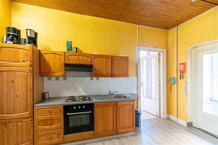 Sorry er is geen nederlandse vertaling beschikbaar. Venez visiter cette grande maison bourgeoise avec deux entrées sur 1 ares 77ca , idéale pour grande famille ou possibilité d' y faire un immeuble de rapport. L'immeuble est actuellement composé au rez de chaussée, d'un vaste hall, d'un living avec deux cheminées, cuisine équipée, une chambre, salle de douche, buanderie et cour. Au 1er étage, deux appartements composé d'un living, une chambre, cuisine , salle de douche, le grenier est également aménagé avec un living, une chambre, salle de douche et cuisine. Grandes caves. Quelques travaux sont à prévoir. Chauffage central gaz + convecteur gaz pour le rez.