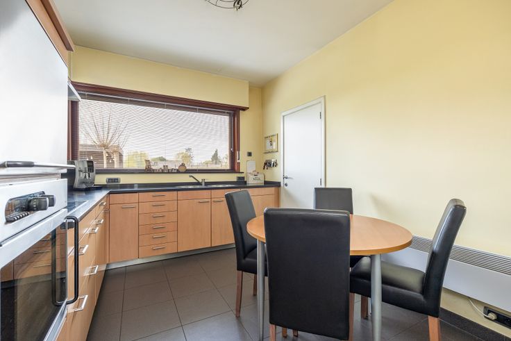 Op het gelijkvloers vindt u de lichtrijke leefruimte, de aparte keuken, toilet, ruime berging/wasruimte en inpandige garage.