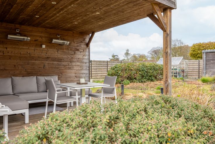 De prachtige ZW-gerichte tuin met overdekte lounge is ideaal voor wie droomt van een leuke buitenruimte, een moestuin of zelfs kleine dieren.