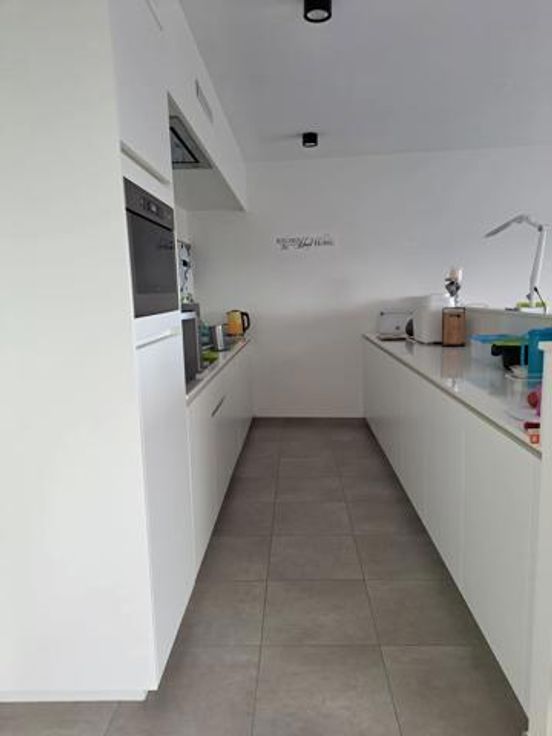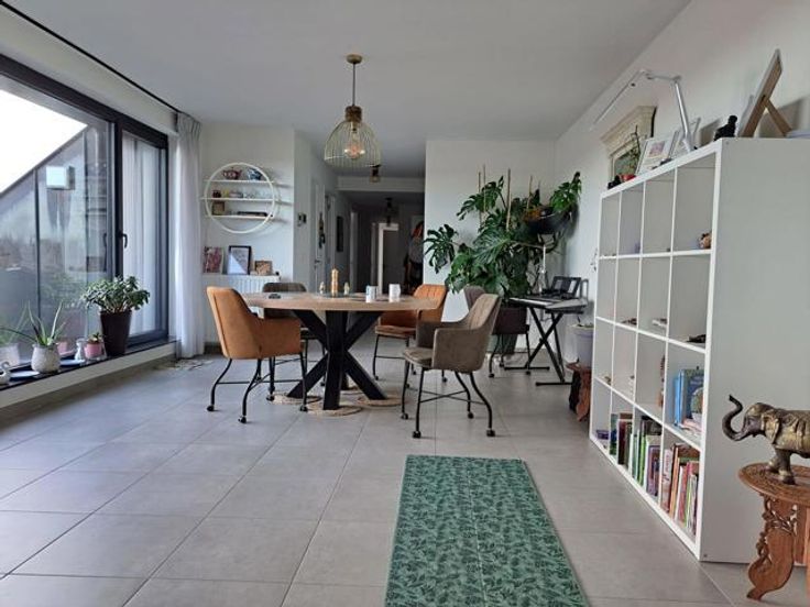 Er is een grote, open leefruimte met volledig uitgeruste keuken. Door de vele ramen, geniet het appartement veel lichtinval. Het west-gerichte terras, dat veel privacy biedt, grenst aan de leefruimte en is bereikbaar via een schuifdeur.