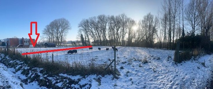Landelijk gelegen. Ongeveer 20 m breed straatkant , op 65 m diepte , achteraan iets smaller naar 10 m toe.