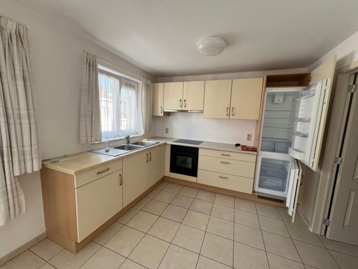Saint-Ghislain centre, bel appartement comprenant un living avec cuisine équipée, buanderie, wc séparé, 2 chambres, salle de bains, garage privé. Infos: 0497/720702