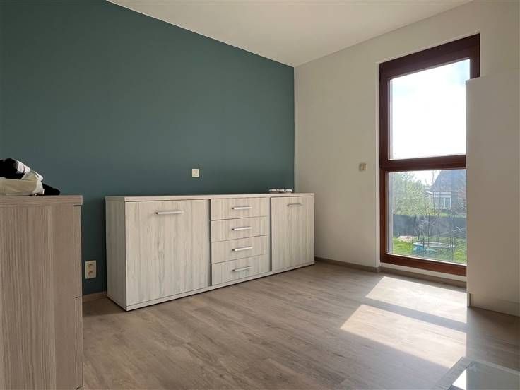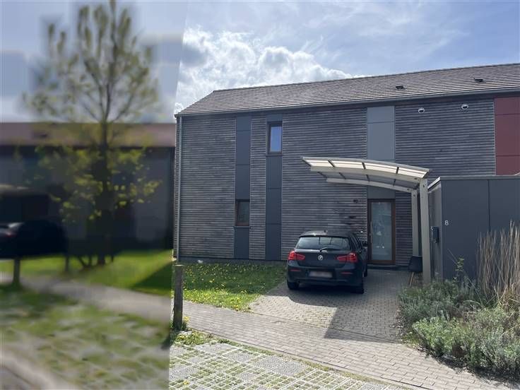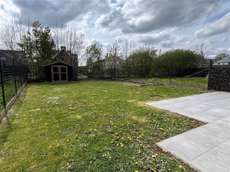 Mooie tuin met terras, parkeerplaats vooraan en een berging van 5m².