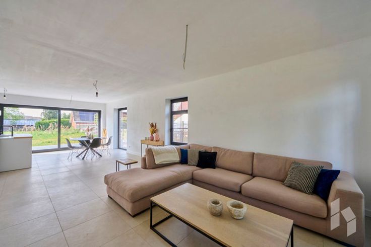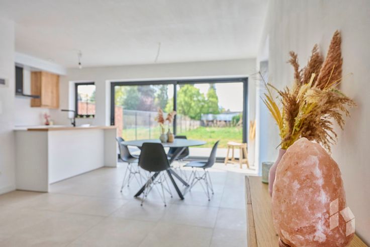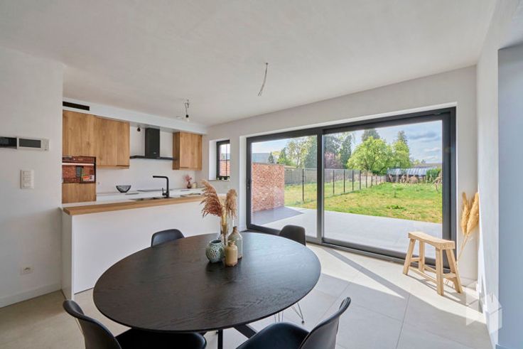 Stijlvolle, instapklare nieuwbouwwoning (145 m²) met een open leefruimte, 3 slaapkamers en een badkamer met bad en douche gelegen op een perceel van 528m² in een rustige omgeving.