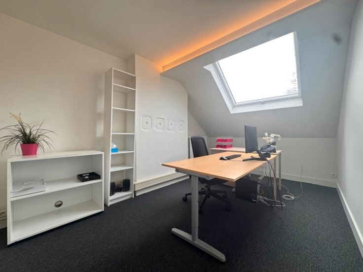 MONTGOMERY / 150m van de metrohalte, dicht bij de winkels in de Rue de Tongres (Mérode) en de Avenue Georges Henri. Aangename kantoorruimte van ca. 12m2 gelegen op de 3e en bovenste verdieping van een herenhuis dat is omgebouwd tot verschillende kantoorruimtes. Deze worden momenteel gebruikt door een vereniging van advocaten. Diensten zoals internet, telefoon, printer/scanner, etc. zijn inbegrepen in de huur van deze ruimte. Het huis heeft ook een aantal gemeenschappelijke ruimtes, waaronder een wachtkamer, twee vergaderruimtes, een keuken en een tuin. Huur: €400/maand + €180 forfaitair voor verwarming, water, nutsvoorzieningen en servicekosten.
