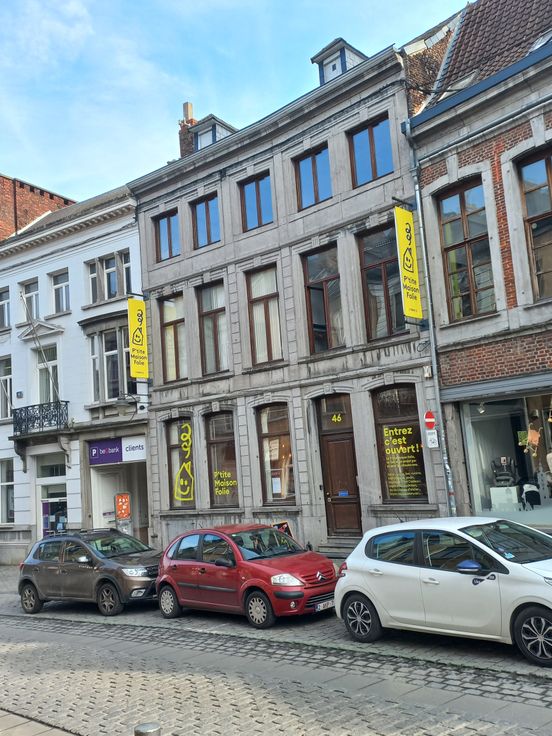 Une maison d'habitation, à usage de bureaux, sise à la rue de Nimy numéro 46, d'une contenance de 7 ares 50 centiares, actuellement occupée par l'ASBL "La Maison folie" jusqu'au 30/12/2026 prolongeable de 6 mois.