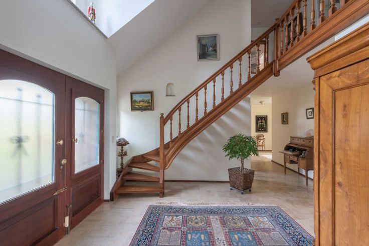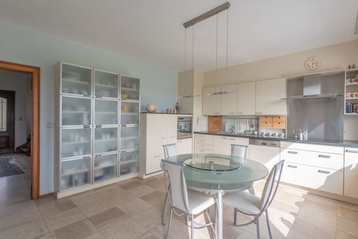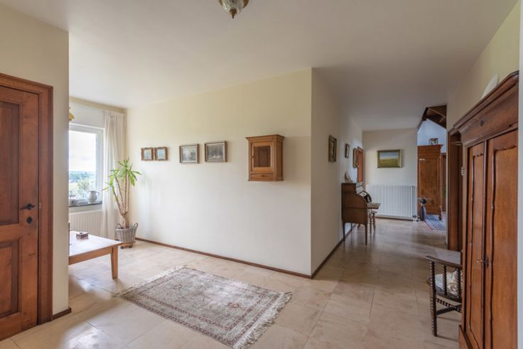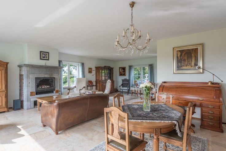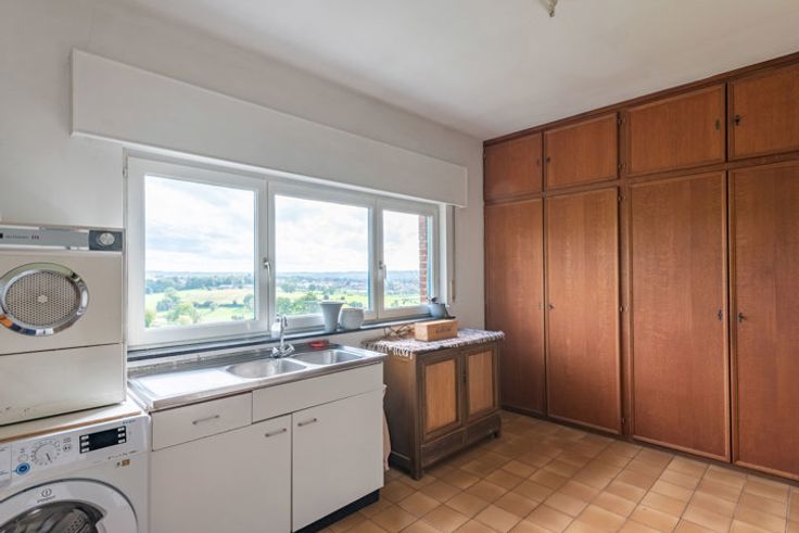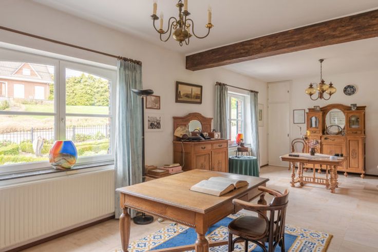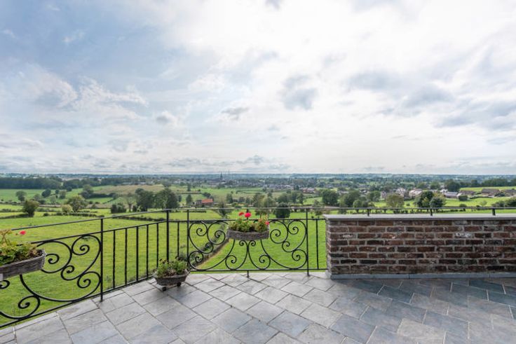 Uitzonderlijke villa met 6 à 8 slaapkamers, een royale werkplaats en een uniek uitzicht over de groene omgeving van Aubel. In 2001 werd deze villa gerenoveerd in een tijdloze, landelijke stijl met kwalitatieve materialen. De woonoppervlakte van 510m2 en is als volgt ingedeeld: GELIJKVLOERS > Inkomhal met vide en open trap naar boven. Bijzonder riante woonkamer van 58,7m2 met houtkachel en grote raampartijen. Compleet uitegeruste leefkeuken van 20,4m2, met rechtstreekse buitendeur naar het terras. Studeerkamer / bibliotheek van 24,64m2, ook perfect voor het uitoefenen van een vrij beroep. Slaapkamer van 16m2. Badkamer van 12m2, voorzien van een ligbad, douche, wandmeubel met lavabo. Berging / wasplaats met trap naar de kelder, toilet en een oppervlakte van 16,5m2. Inpandige garage met handmatige poort en ingebouwde kastenwand: 36,7m2. EERSTE VERDIEPING >