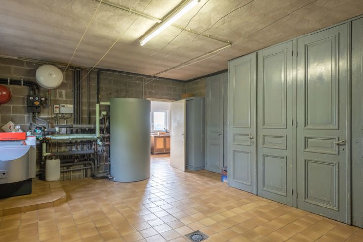 Nachthal. Masterbedroom van 27,6m2. 4 Slaapkamers van 13,4m2, 12,04m2, 13,3m2 en 9,4m2. Werkkamer van 21,7m2, kan eventueel ook dienst doen als een extra grote slaapkamer. Zolder van 41,71m2. SOUTERRAIN > Kelder van 27m2. Wijnkelder van 22,4m2. Royale werkplaats van 205m2 met een hoge inrijpoort en een plafondhoogte van 3,9m. GROENE ENERGIE > Er werd geïnvesteerd in duurzame energievoorzieningen die resulteren in een lage energiefactuur. 4 Zonnecollectoren. 21 Zonnepanelen. PERCEEL > Het ruime perceel van 21a60ca is mooi aangelegd en zuid-oost georiënteerd.