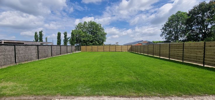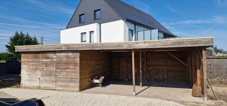 Grote tuin met overdekte autoplaats en bergplaats