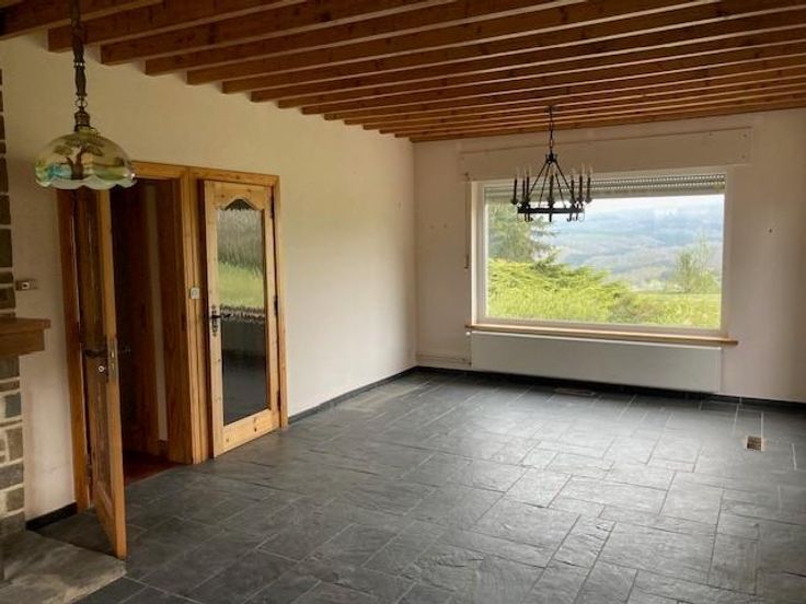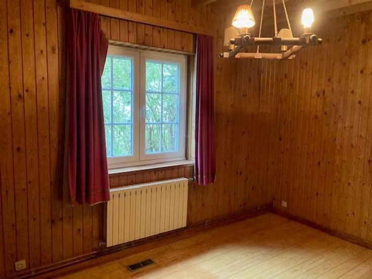 Ce bien est vendu par internet à partir du 10/06/2025 jusqu'au 18/06/2025. Charmante maison quatre façades de plain-pied située sur les hauteurs du village de Nassogne. La maison dispose d’un très grand jardin (surface totale = 26 a 81 ca). Elle se compose d’un hall d’entrée, d’une grande pièce de vie (salon et salle à manger) avec un feu ouvert, d’une cuisine semi-équipée, d’un WC et d’une salle de bain avec douche et bain. La maison comporte également trois chambres. Deux garages. Chauffage au mazout. Revenu cadastral non-indexé : 950,00€.
