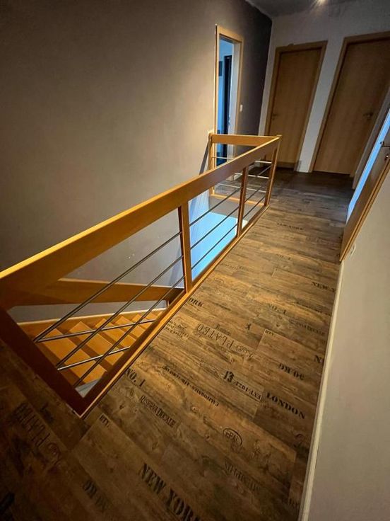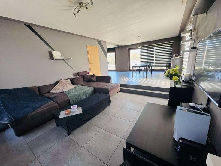 maison d'habitation 4 façades sur 51a 93ca - RC : 971,00 euros, se composant : -RDC : vaste hall d'entrée, toilettes séparées, bureau, living, cuisine super équipée, buanderie -Etage : hall de nuit, toilettes séparées, salle de bains (avec double lavabo, baignoire et douche), 4 chambres, dressing, grenier à aménager (possibilité 1 chambre) Extérieur : jardin clôturé, garage pour 1 voiture Chauffage central électrique avec pompe à chaleur Info pratique : partie professionnelle possible avec hall d'entrée, toilettes et bureau
