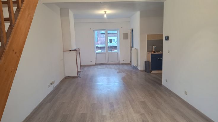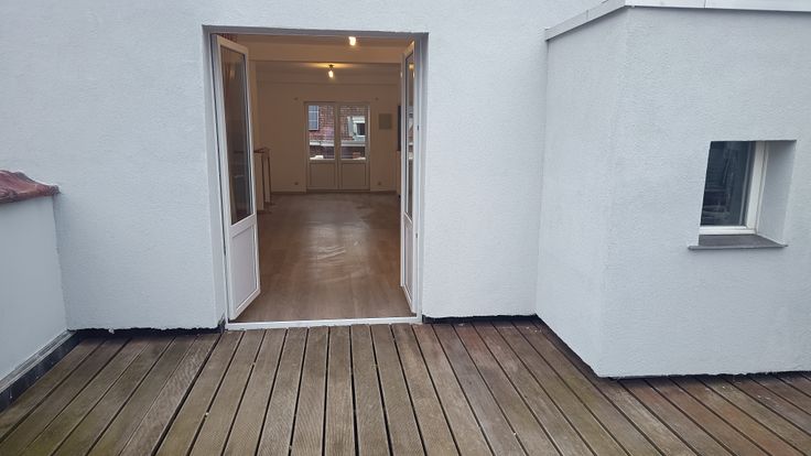 Ruime duplex op derde verdieping van gebouw. De duplex is voorzien van een ingerichte keuken met nieuwe kookplaat, afzuigkap en oven en frigo, microgolfoven en diepvriezer (2024)Een kleine douchekamer met douche, wastafel en WC en een open ruimte voor eet - en woonkamer. Op de verdieping erboven is een zeer ruime slaapkamer onder het dak voorzien van meubels voor kleding op te bergen. Huisdieren zijn niet toegelaten. Verder is er een balkon aan de straatkant en een ruim terras aan de achterzijde.