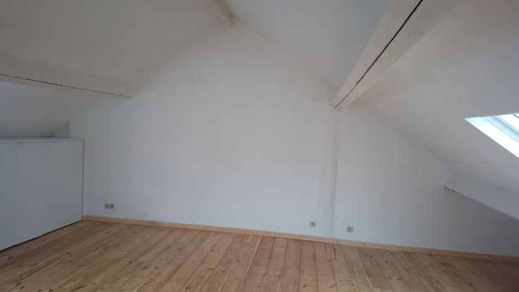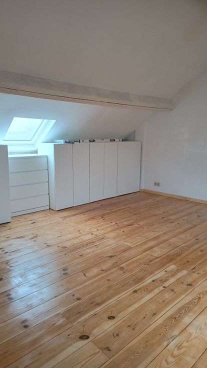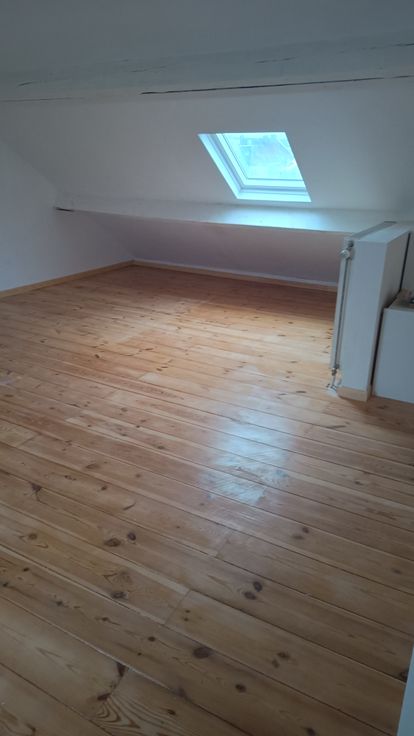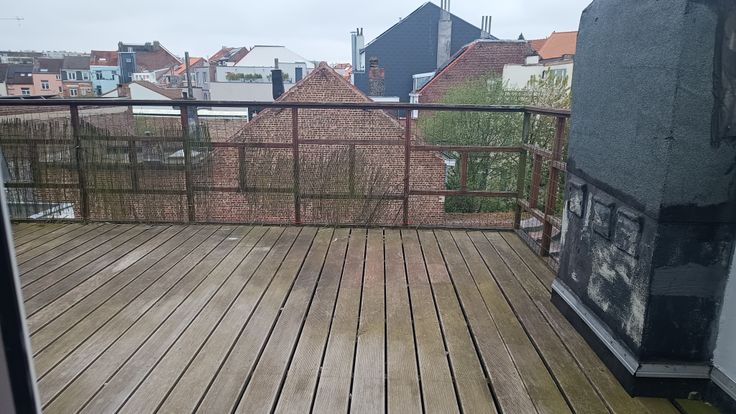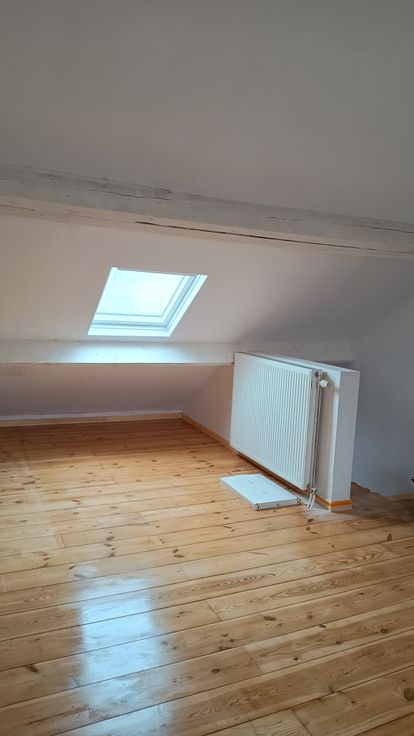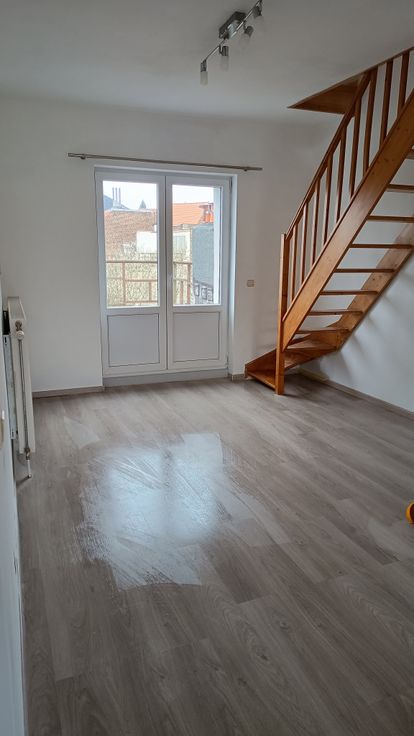 Duplex spacieux au troisième étage de l'immeuble. Le duplex dispose d'une cuisine équipée avec plaque de cuisson neuve, hotte aspirante et four et réfrigérateur, micro-ondes et congélateur. Une salle de douche avec douche, lavabo et WC et salle à manger/living & une petite buanderie avec machine à laver. A l'étage supérieur se trouve une chambre mansardée très spacieux avec meubles pour rangement des vêtements. Un balcon devant et une terrasse à l'arrière sont disponible. Des animaux domestics ne sont pas autorisé.
