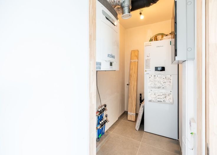 Inkomhal | berging met voorziening voor wasmachine | VOLLEDIG uitgeruste keuken met duurzame toestellen | lichtrijke leefruimte met slaapmogelijkheid | zuidgericht terras | badkamer met inloopdouche, lavabo in meubel en toilet.