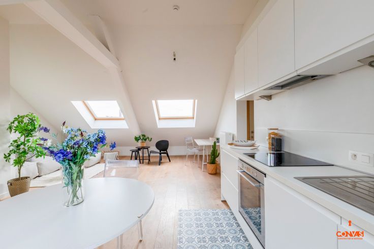 Dit appartement is uitstekend gelegen nabij winkels, scholen, UZ en openbaar vervoer zoals station Gent-Sint-Pietersstation, bus- en tramhaltes. In 2013 onderging het volledige appartementsgebouw een totaalrenovatie waar alles werd vernieuwd. De grote raampartijen aan de keukenzijde en de veluxen aan de voorkant zorgen voor veel lichtinval in de leefruimte. Het appartement beschikt over een open leefruimte met eetplaats, een open keuken met toegang tot het terras, een apart toilet, een badkamer en twee slaapkamers waarvan één ook toegang heeft tot het terras. Het appartement beschikt tevens over een fietshaak in de gemeenschappelijke fietsenstalling. Kortom, dit is het perfecte appartement voor wie op zoek is naar comfort, veel lichtinval en een gunstige ligging in de stad! Wenst u dit instapklare appartement te ontdekken? Neem dan contact op met Theo voor uw bezoek ter plaatse: theo@convas.be Renovatieplicht: nee