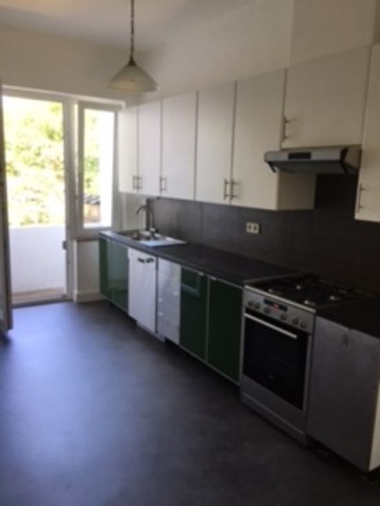 Lumineux appartement 1 chambre au 3ème et dernier étage, fraîchement repeint, dans immeuble typé de 1936. Hall, Grand living avec belle terrasse à l’avant, une chambre, cuisine équipée avec petite terrasse avec vue arborée, sdb, wc séparé.