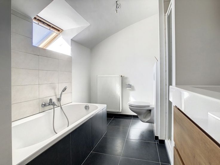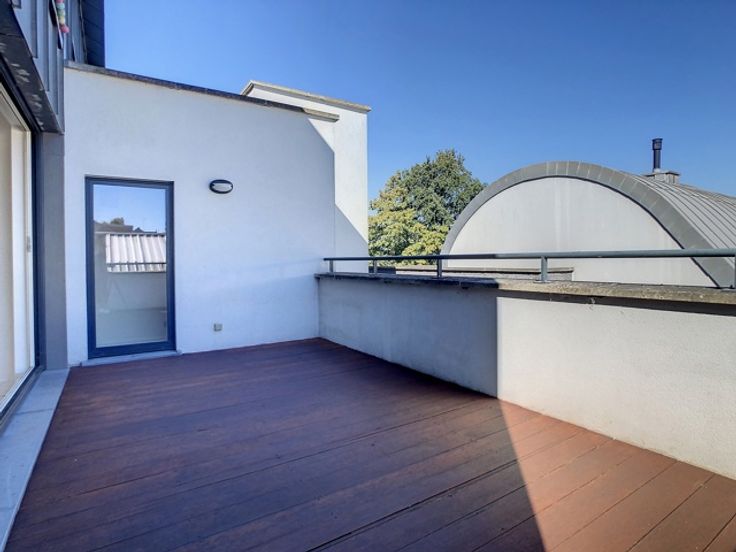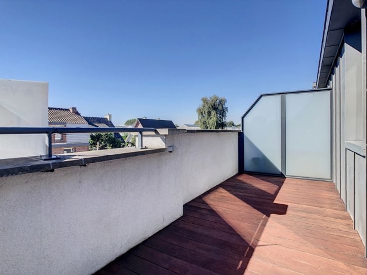 Superbe duplex de 120 m² avec ascenseur aux abords de Tournai Ce spacieux duplex offre un cadre de vie confortable et lumineux. Il se compose d’un hall d’entrée avec WC séparé, menant à un vaste séjour en parquet de chêne et une cuisine semi-ouverte entièrement équipée (frigo, four, taques, hotte, évier, lave-vaisselle et rangements). Une buanderie attenante permet d’installer une machine à laver. Le séjour s’ouvre sur deux belles terrasses de 12 m² et 18 m², idéales pour profiter du soleil tout au long de la journée. À l’étage, un hall de nuit, pouvant faire office d’espace bureau, dessert deux chambres de 12 m² et 14 m² ainsi qu’une salle de bain équipée d’une baignoire, d’une douche, d’un évier et d’un WC. Ce bien dispose également de châssis en PVC double vitrage, d’un chauffage au gaz, d’une cave et d’un parking sécurisé avec portail motorisé. Aspects énergétiques: PEB n° 20230830018608 - Espec: 127 kWh/m².an - (Label B) E totale: 15 297 kWh/an. Libre au 01/07/2025. Loyer mensuel: 850 € + 75€ de charges communes + 50 € de garage
