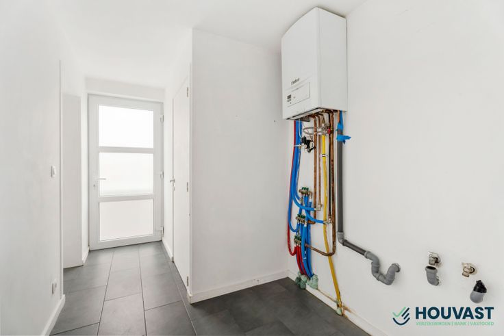 Op de gelijkvloers hebben we de inkomhal, wasruimte, apart toilet en de woon/eetruimte met keuken.