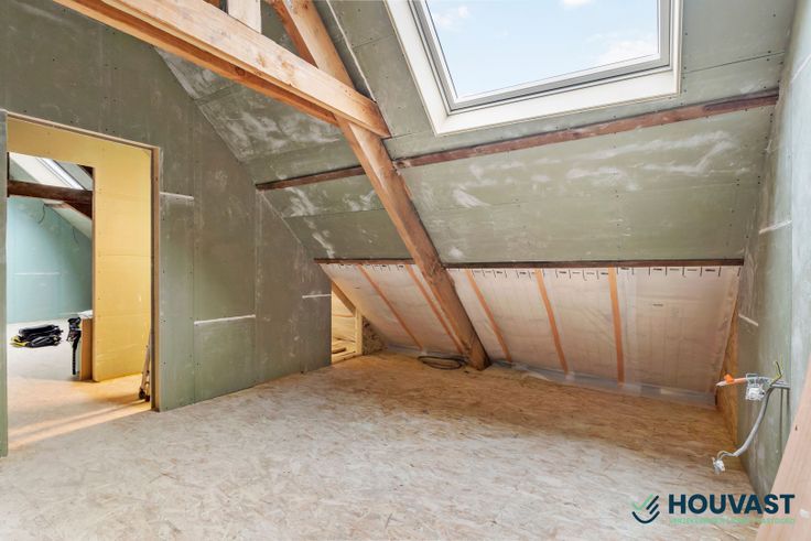De zolderverdieping werd ook gerenoveerd maar hier dient nog de afwerking te gebeuren. Hier worden zo nog twee extra ruimtes gecreëerd.