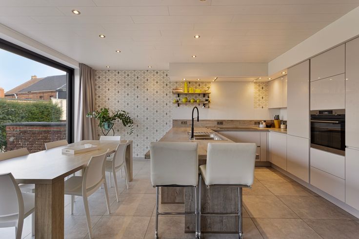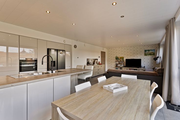 Het woongedeelte omvat hall, toilet, LICHTRIJKE leefruimte met open VOLLEDIG UITGERUSTE RUIME KEUKEN met mooi uitzicht op de mooie ruime tuin.