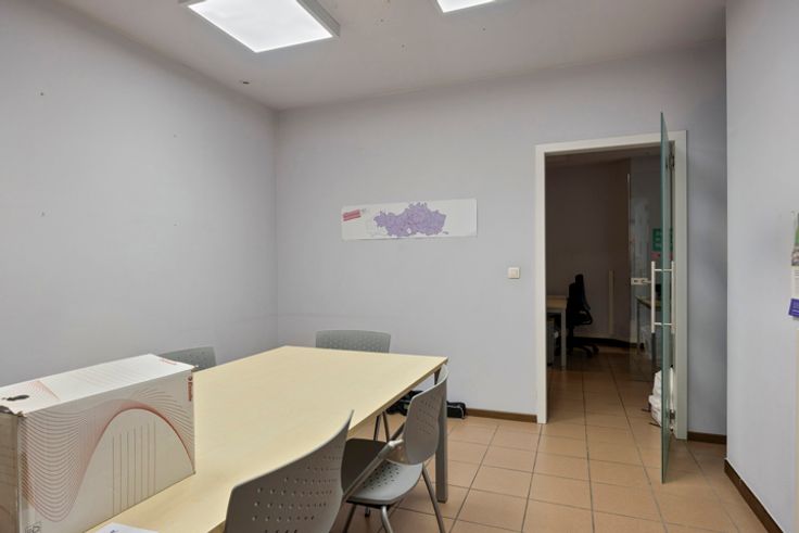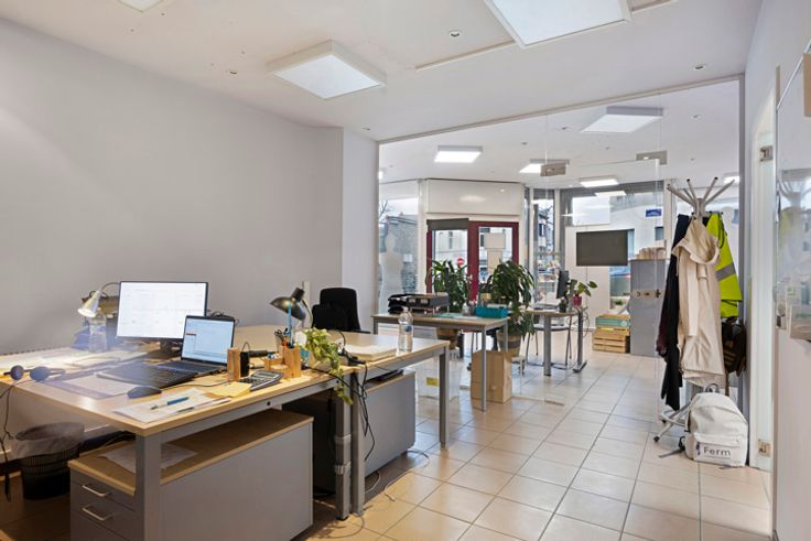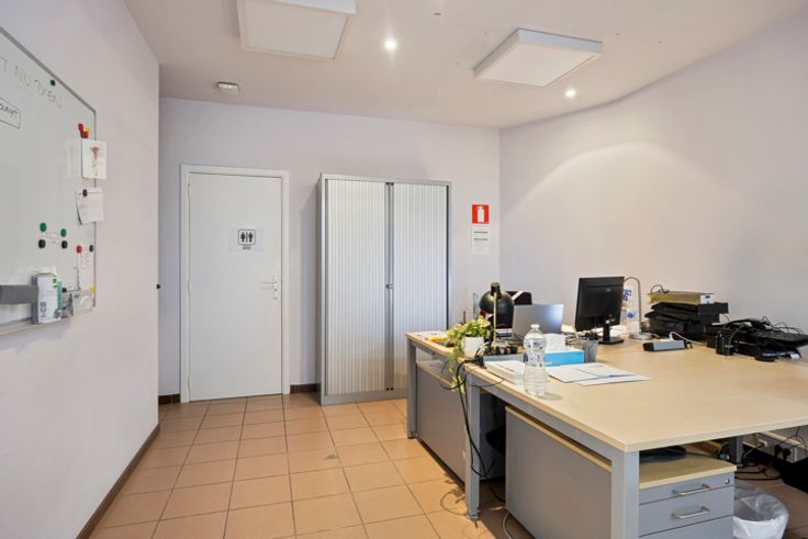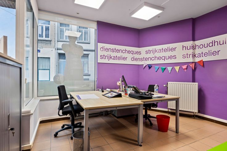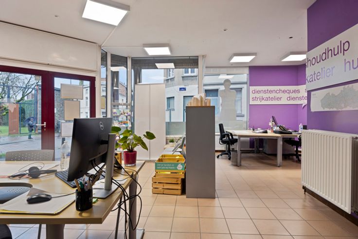 Gelijkvloers kantoor gelegen op de hoek van de Zuster Bernardastraat en de Volpestraat in het centrum van Halle. Bruikbare vloeroppervlakte van 94 m² met een handige berging, keuken en een toilet. Aantrekkelijke kantoorruimte met grote vensters/etalage die veel natuurlijk licht binnenlaten.