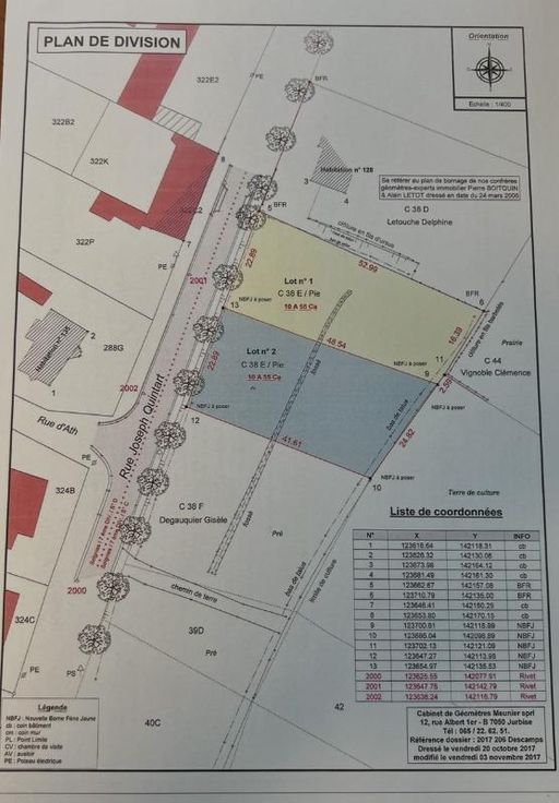 TERRAIN A BATIR: (LOT 1 du plan) Ville de Soignies - 7ième division - Chaussée-Notre-Dame-Louvignies, sis au lieu-dit "Champ de Godferd" d'une contenance de 10 ares 55 centiares. Faire offre à partir de 106.000 euros. Renseignements (urbanistique) en l'étude des Notaires François NOE & Gaëtan LEMAIRE: 067/41.15.80.