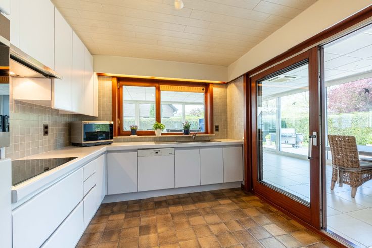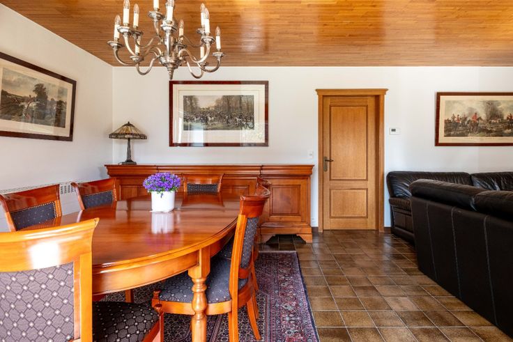 Villa met garage, carport, 30 zonnepanelen en een bewoonbare oppervlakte van 260m² + EPC B Bij binnenkomst in deze alleenstaande woning word je verwelkomd in een ruime inkomhal, met voldoende plaats voor een vestiaire. Vanuit de hal betreed je de leefruimte, die naadloos overgaat in de lichtrijke keuken, uitgerust met ingebouwde toestellen. Enkele jaren geleden werd de woning uitgebreid met een lichtrijke uitbouw, verwarmd door een gezellige gaskachel. Dit is een ideale plek om zowel in de zomer als in de winter te genieten. Verder beschikt de woning over een aparte wasruimte met een douche. Op het gelijkvloers bevindt zich ook een multifunctionele kamer die perfect dienst kan doen als slaapkamer, bureau of praktijkruimte en er is een inpandige garage. Aan de achterzijde van de woning vind je een ruime carport, groot genoeg voor minstens twee auto’s. Op het dak liggen 30 zonnepanelen met een totaal vermogen van 7200 WP. Bovendien zijn er nog groenestroomcertificaten beschikbaar, wat betekent dat je de komende zes jaar €300 per 1000WP terugkrijgt. De woning heeft een ruime, droge kelder. Op de eerste verdieping bevinden zich drie slaapkamers, afgewerkt met een mooie parketvloeren. Daarnaast is er een badkamer met dubbele lavabo, een bad en toilet. De zolderkamer herbergt de technische installaties. Er is nog een geïsoleerde zolder die kan betreden worden via een uitschuifbare ladder. Dit is een vanafprijs. Elk hoger bod wordt voorgelegd aan de eigenaar. PLUSPUNTEN: +