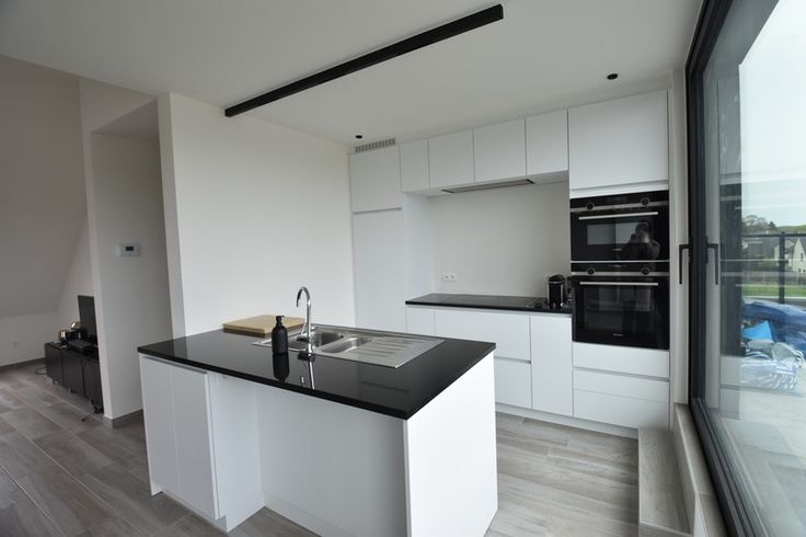 Keukenvoorzieningen: spoeltafel, vaatwasmachine, keramische kookplaat, dampkap, oven, microgolfoven, frigo met diepvriesvakje.