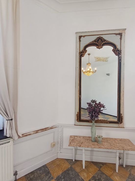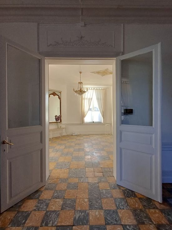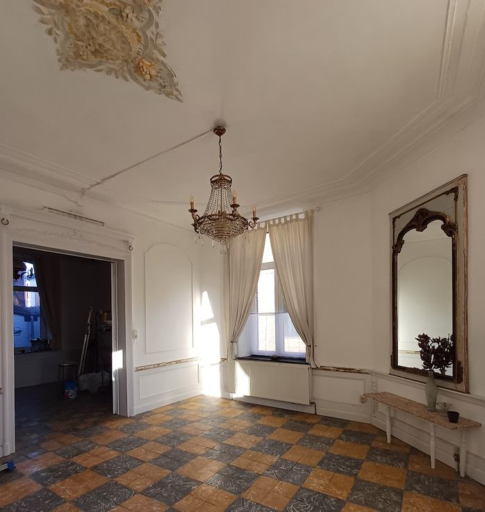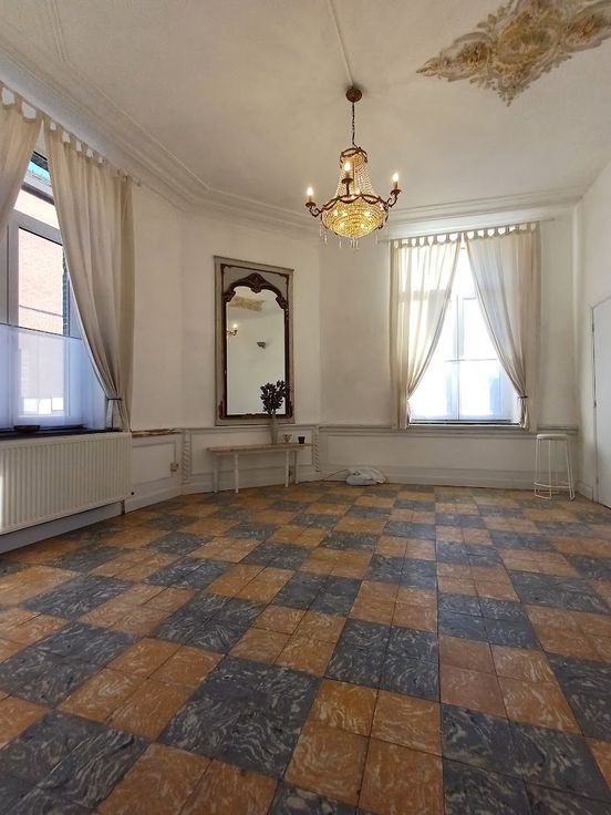 Dit klassiek appartement (75m²) met hoge plafonds en een authentieke uitstraling is de gelijkvloerse verdieping van een Herenhuis.