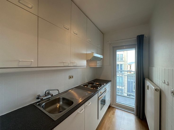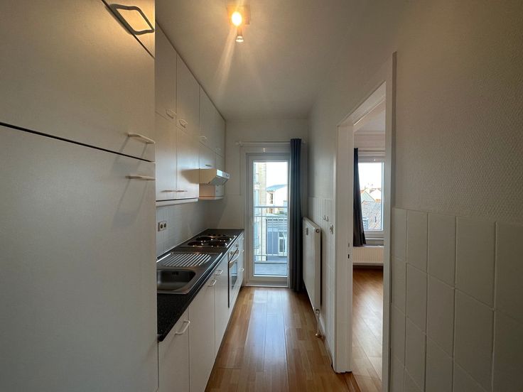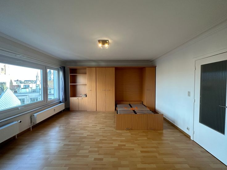 Goed verzorgde studio gelegen op de vijfde verdieping. De studio is uitgerust met een open keuken voorzien van alle nutsvoorzieningen, inclusief een koelkast met vriesvak, oven en een plaats voorzien voor een wasmachine. De woonruimte biedt modern comfort en er is een bed aanwezig. De studio beschikt over een terras aan de voorzijde. Daarnaast is er een afzonderlijk toilet aanwezig. Verder is er in het gebouw een berging en fietsenberging beschikbaar, alsook is er een lift aanwezig. De studio is beschikbaar vanaf 01/12/2024. De huurprijs bedraagt €625 per maand, met een forfait van €60 voor de algemene onkosten en €50 voor verwarming en water.