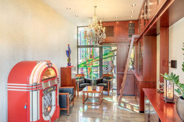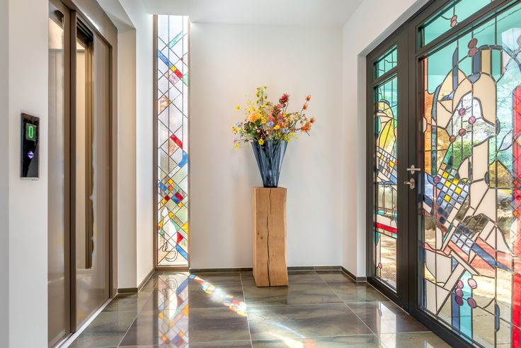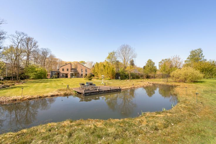 Een weldoordachte inrichting binnenshuis in combinatie met de karakter en kwaliteitsvolle materiaalkeuzes geeft u dadelijk het juiste thuisgevoel. Betreden doet u de woning via een ruime inkomhal met knappe draaitrap die u naar de eerste verdieping brengt. Eveneens heeft u directe toegang tot een recent geplaatste lift die u ook toekomstgericht tal van gunstige perspectieven biedt. De eet- en leefruimte zijn deels van elkaar afgescheiden door de aanwezige haard. Elke ruimte geniet door de knappe raampartijen van een mooie lichtinval. Vanuit de geïnstalleerde keuken met eiland en ontbijthoek geniet u van prachtig zicht op tuin en vijver. Tevens op deze verdieping bevinden zich 2 aparte en ruime bureauruimtes. Een inpandige garage voor 2 wagens maakt hier alvast het plaatje compleet.