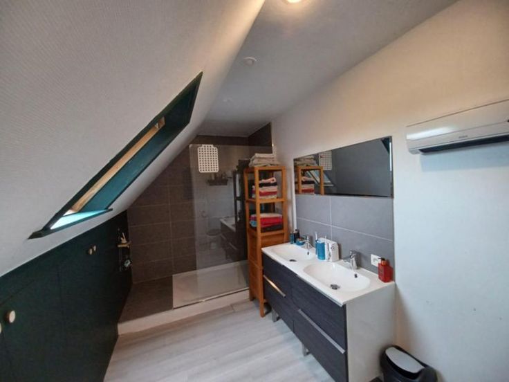 0476 95 10 87 A VENDRE – MAISON mitoyenne avec garage (avec grenier), parking (possibilité double parking), jardin, 4 chambres Adresse : Mouscron, chaussée d’Aalbeke 296 4 chambres Jardin Garage Parking (possibilité double parking) Superficie du terrain : 314 m² Panneaux solaires PEB D Droits d’enregistrement 3% (pour un 1er achat – suivant les conditions) Maison comprenant : -Sous-sol : cave -Rez-de-chaussée : hall d’entrée (hauts plafonds), vestiaire, WC (lave-mains), salon lumineux, salle à manger lumineuse (accès vers le jardin), cuisine (évier, taques, four, lave-vaisselle), cellier/buanderie (douche), véranda. -1er étage : hall de nuit, 2 chambres dont une avec un dressing, salle de bain (douche, double lavabo, WC) -2ème étage : hall bres -Extérieur : garage (grenier) avec accès vers le jardin (porte sectionnelle motorisée) Parquet semi-rigide et carrelage (entrée et cellier) au rez-de-chaussée. Feu cassette bois, chauffage électrique (chauffage central au gaz pouvant fonctionner). Châssis PVC double-vitrage au rez-de-chaussée. Superficie : 314 m² – superficie utile : 174 m² – RC : 686 Euros Maison idéalement située, proche de toutes commodités (axes routiers et autoroutiers, transports en commun, nombreux commerces, écoles, église, …). Rédiger une offre pour ce bien : https://actalex.be/modele-doffre/ Prix et renseignements communiqués à titre informatif, sous réserve de confirmation.