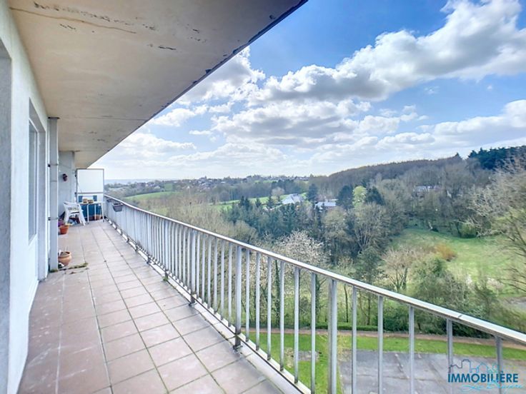 Appartement 2 chambres idéalement situé dans le Parc du Bay Bonnet à proximité du centre de Fléron et de ses nombreux commerces. Il se compose d'un hall d'entrée (+/- 3m²), séjour (+/- 28m²), cuisine semi équipée (2m x 4,1m) - four, taque et hotte, 2 chambres (3m x 4,1m - 3,8m x 2,7m), salle de bains (2,1m x 1,8m) - baignoire/douche et une toilette individuelle (+/- 2m²) Belle terrasse lumineuse orientée Ouest et accessible de la cuisine et du séjour. Parc privatif Châssis PVC DV Electricité conforme Une cave individuelle. Compteur électrique individuel Appartement actuellement loué, mais bail résiliable par l’acheteur en cas d’occupation personnelle PEB n°20150821011682 - Classe B - Espec : 144 kWh/m².an - Etotale : 10 199 kWh/an