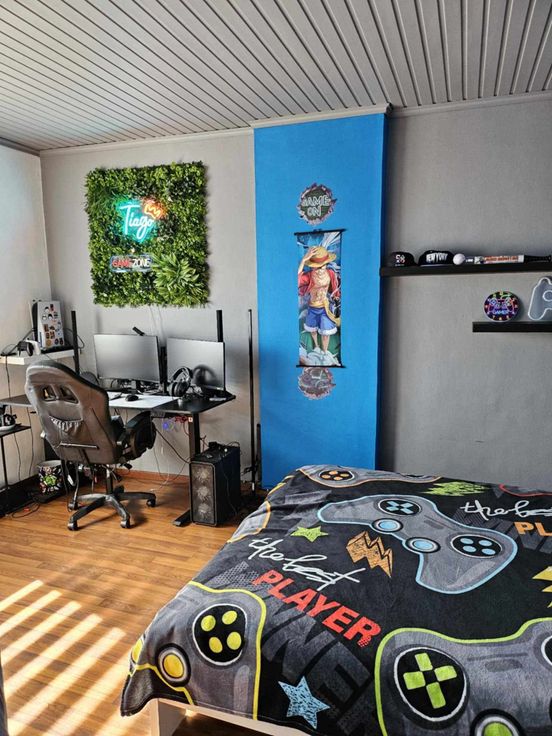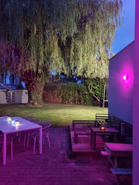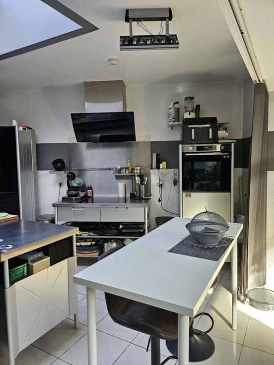 La partie privée dispose d’un salon, salle à manger, cuisine style industrielle en inox, buanderie, 2 WC, cave, 3 chambres, une grande salle de bain (douche + baignoire), grenier aménageable et grand jardin clôturé.