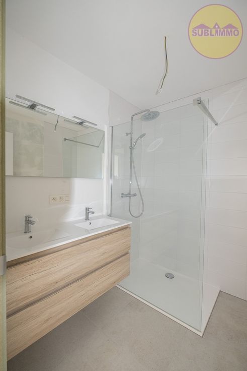 Dit nieuwbouwappartement op de tweede verdieping (111,20 m²) omvat 2 slaapkamers, een badkamer met inloopdouche en wastafel met 2 lavabo’s, een apart toilet, een berging/wasplaats en een leefruimte met open en geïnstalleerde keuken. De leefruimte biedt toegang tot het overdekt terras. Verder is het gebouw voorzien van een gemeenschappelijke binnentuin en een gemeenschappelijke fietsenberging. Er is een lift aanwezig.