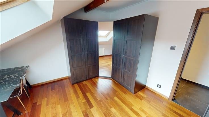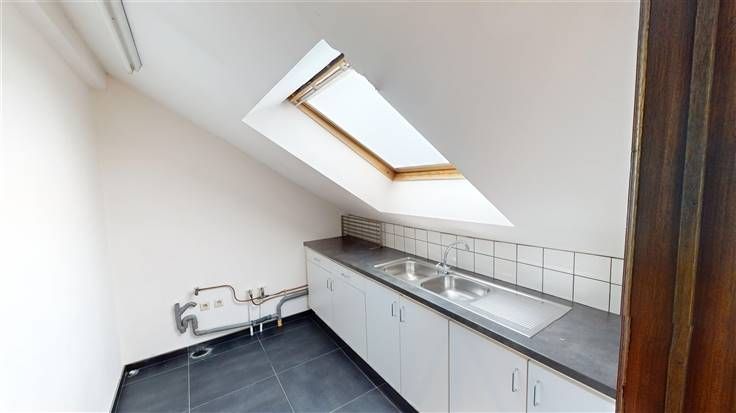 3ème étage : spacieux hall d'entrée (+/23 m²) avec vestiaire/placard et w.c. (+/-1 m²), lumineux séjour (+/-49 m²) donnant accès à la terrasse, cuisine équipée (+/-14 m², avec frigo américain, four, taque vitrocéramique, hotte, lave-vaisselle, plan de travail en granit, meubles évier et rangement) avec également un accès à la terrasse, buanderie (+/-6 m², avec meubles et évier), 3 chambres à coucher (+/- 20, 15 et 14 m²), belle salle de bains (+/-11 m², avec douche à l'italienne, baignoire, radiateur sèche-serviettes et meuble lavabo)