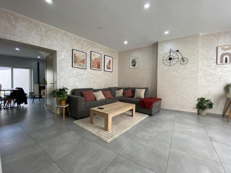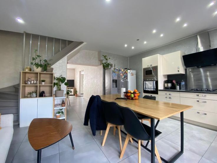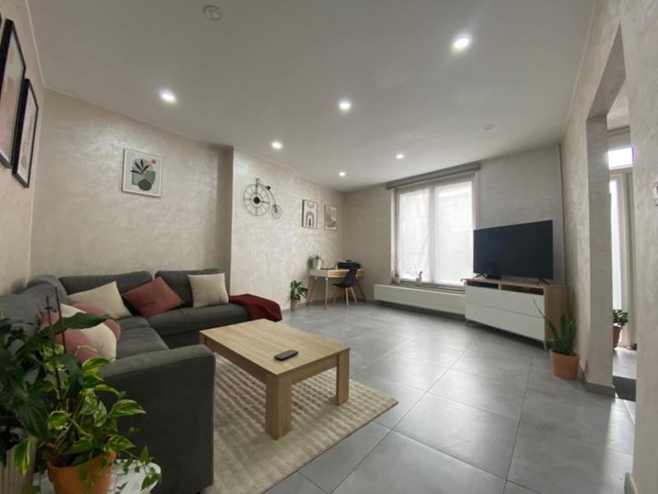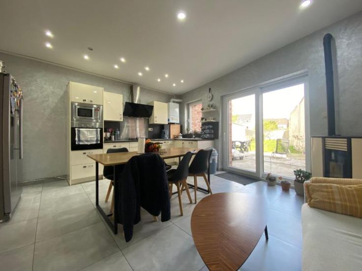 Ville de Charleroi - 7 ème division - section de MONTIGNIES-SUR-SAMBRE – première division – revenu cadastral : 401,00. Très belle maison d’habitation entièrement rénovée avec toutes dépendances, terrasse et jardin, sise à la rue Jean Jaurès, numéro 214, d’une superficie totale de 2 a 50 centiares comprenant : - au rez-de-chaussée : hall d’entrée, salon/salle à manger, cuisine entièrement équipée et une salle de bains ; - au premier étage : hall de nuit, deux chambres, un dressing, une salle de bains /wc ; - au deuxième étage : hall de nuit, deux chambres. - caves - Chauffage : central au gaz et pellets dans la cuisine. - Nouvelle toiture.