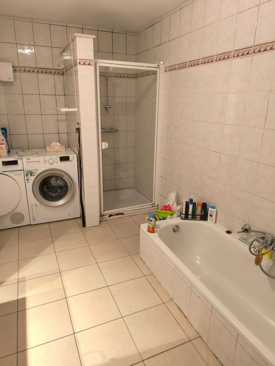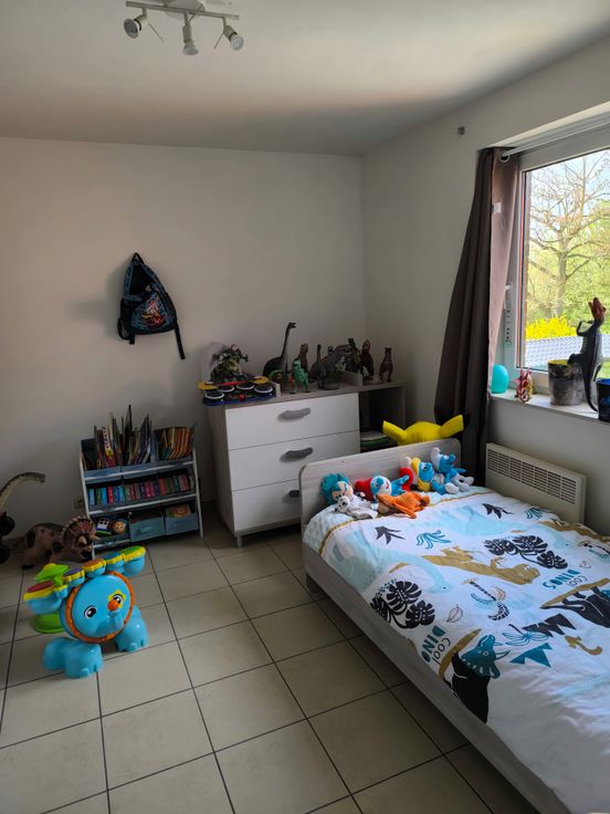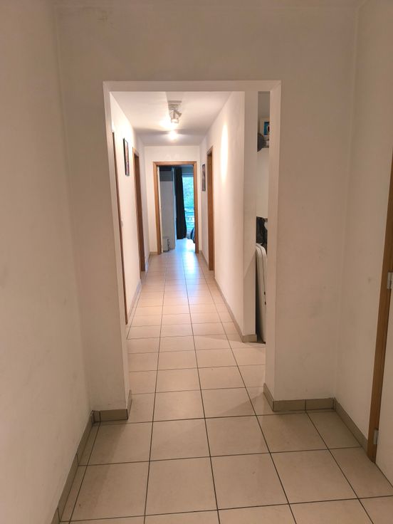 celui-ci comprend : 1 hall d'entrée, 1 wc individuel, 1 salle de bain avec douche, 1 baignoire et 1 lavabo, 2 chambres, 1 bureau ou 1 chambre supplémentaire, 1 grand living très lumineux, 1 cuisine équipée (frigo, taque cuisson électrique, hotte et four) et 1 buanderie.