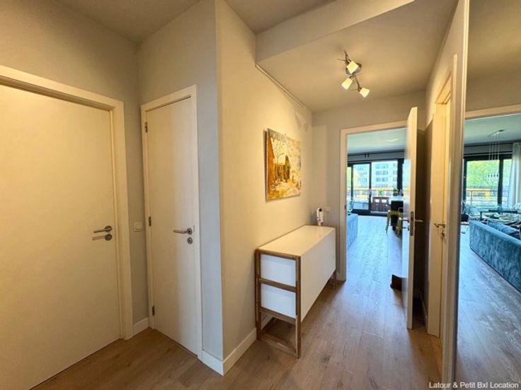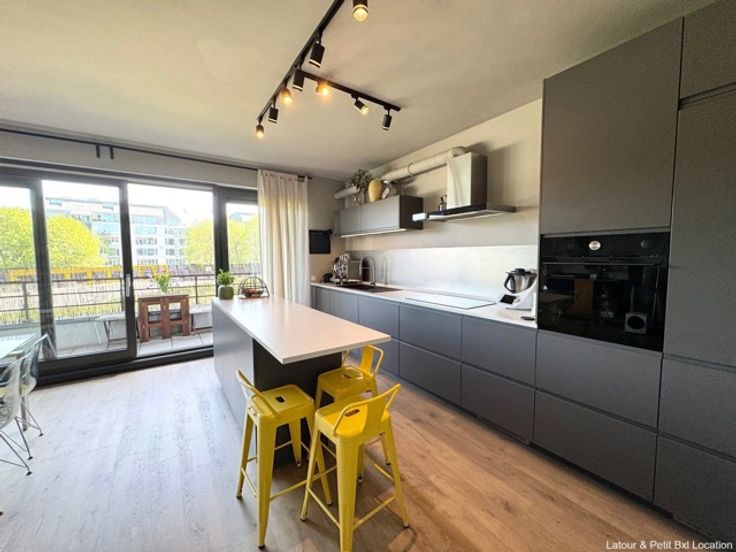 SCHAARBEEK, ideaal gelegen in de zakenwijk, dicht bij de metro en tal van winkels, licht gemeubeld APPARTEMENT (3Slk/1Badk/1Ddk) van ± 120m² met terras en binnenparkeerplaats. Gelegen op de 1e verdieping, het bestaat uit een inkomhal met vestiaire en gastentoilet, gastenkast, een eerste slaapkamer (12m²), ruime woonkamer van ± 32m² met parketvloer en een open, volledig ingerichte keuken met toegang tot het terras, nachthal met ingebouwde kast, douchekamer, tweede slaapkamer (12m²) en derde slaapkamer (14m²), een badkamer met wasmachine en droogkast en een apart toilet. Slimme verlichting aanwezig. Kelder en parkeerplaats inbegrepen. Provisie lasten: +€135/maand (gemeenschappelijke delen). EPC C. Beschikbaar vanaf 1 juli. Te ontdekken bij L&P!
