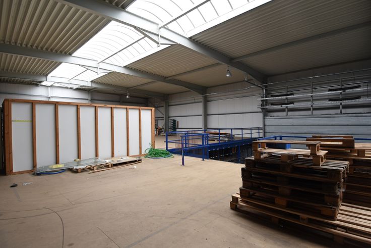 * hoogte van het hoofdmagazijn is 7.56m (met als hoogste punt 8.69m), in dit magazijn is nog een verdiep aanwezig met als oppervlakte ca 300m²