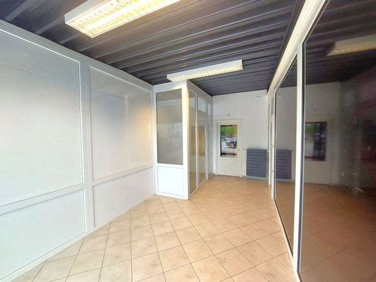 Unique au Zoning Wavre Nord !! Bien totalisant 150 m² de bureaux - showroom et petit stockage à l'avant du magasin "Lecot" | Espace atypique très lumineux qui bénéficie d'une super visibilité au sein du zoning ! Vitrine de de +- 14 m de long ! | Bien divisé en plusieurs espaces: bureaux-showroom principal de 45 m², bureau-salle de réunion de 25 m², petit bureau de 15 m², espace de stockage de 20 m² et 25 m² | 2 entrées possibles | sanitaire et kitchenette privatifs | 3 Parkings privatifs à disposition | loyer: 1400€ + Forfait de 250€ pour charges privatives et communes et précompte . A voir !