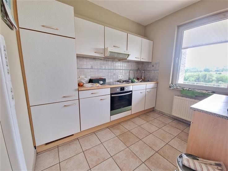Appartement gelegen op de 1e verdieping van een klein gebouw in Soumagne met een prachtig vrij uitzicht aan de achterzijde. Met een oppervlakte van 90m² is dit appartement in goede algemene staat. Het bestaat uit: Een inkomhal, een woonkamer van 29m² (met een houtcassette), een ingerichte keuken van 7m² (koelkast, inox spoelbak, kasten, afzuigkap, inductiekookplaat en multifunctionele oven), een nachthal, een badkamer (6m²), een apart toilet, een bureau (5m²) en twee slaapkamers van 12 en 13m². Buiten: balkon van 15m², grote garage van 35m² en een aantrekkelijke omheinde tuin van 190m². Centrale verwarming op stookolie en PVC kozijnen. Onafhankelijke kosten (elektriciteit, olie en water). Beschikbaar op 1 mei 2025.