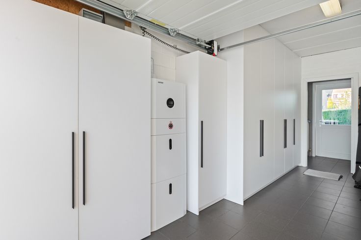 De garage is voorzien van maatkasten en nieuwe poort