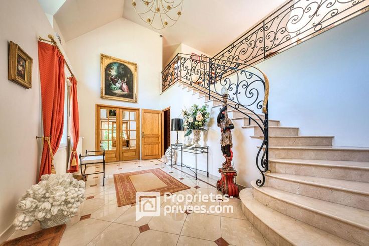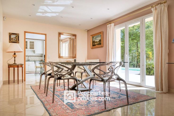 Au rez-de-chaussée, un vaste hall d'entrée avec une belle hauteur sous plafond s'ouvre sur un séjour lumineux de 63 m², prolongé par une grande terrasse ensoleillée avec piscine avec pool house : exposition plein sud.