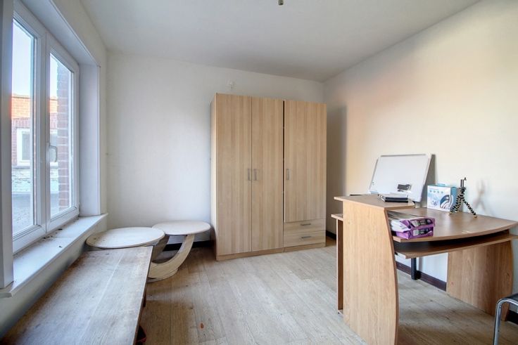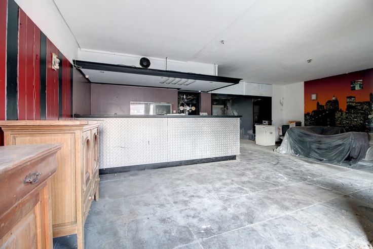 Au REZ : Un sas d’entrée desservant une grande surface commerciale développant +/- 100m² (anciennement exploité en débit de boissons), une cuisine, une cave, des toilettes séparés H-F, 2 pièces polyvalentes offrant de nombreuses possibilités d’aménagements. Un hall d’entrée séparé menant directement à l’appartement.